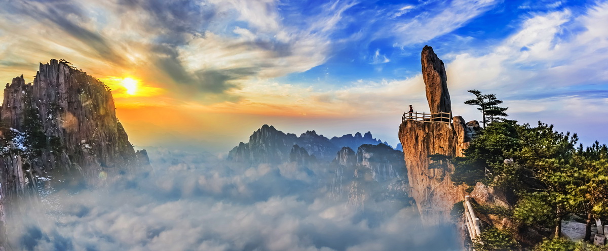 Горы Хуаншань, объект Всемирного наследия ЮНЕСКО поражает воображение своими гранитными пиками, вековыми соснами, цепляющимися за скалы, горячими источниками и знаменитым «морем облаков», окутывающим вершины на рассвете.. Мы едем туда, чтобы созерцать захватывающие  дух пейзажи, совершать пешие прогулки по многочисленным тропам и встретить незабываемые рассветы и закаты.